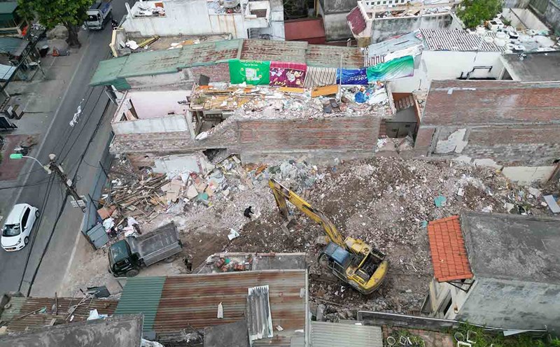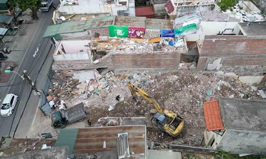 The People's Committee of Van Mieu - Quoc Tu Giam Ward has requested the investor, Ms. T.T.T.B, to stop all construction activities, and urgently coordinate to overcome the consequences, fully implement regulations on labor safety and construction.