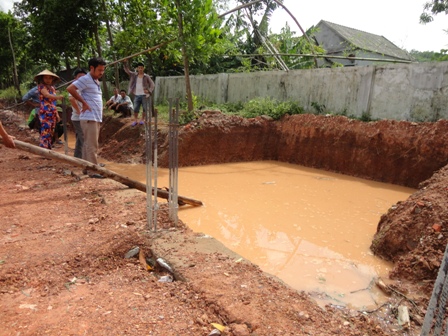 | Hố công trình nơi 2 anh em chết đuối ở trường Tiểu học Cẩm Hưng. Ảnh: TH |