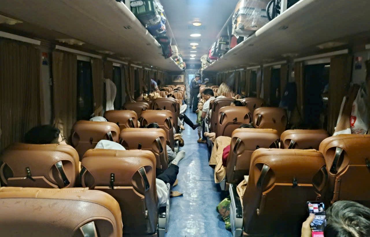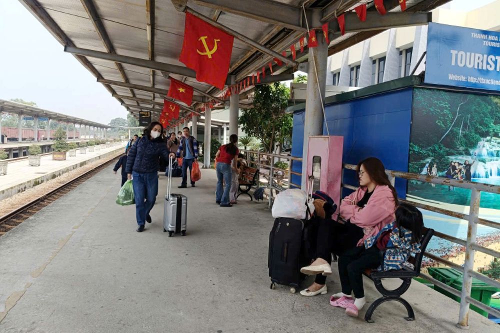 Images recorded at Thanh Hoa Station and on trains after the Tet holiday: