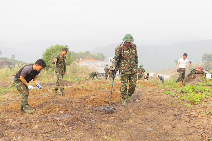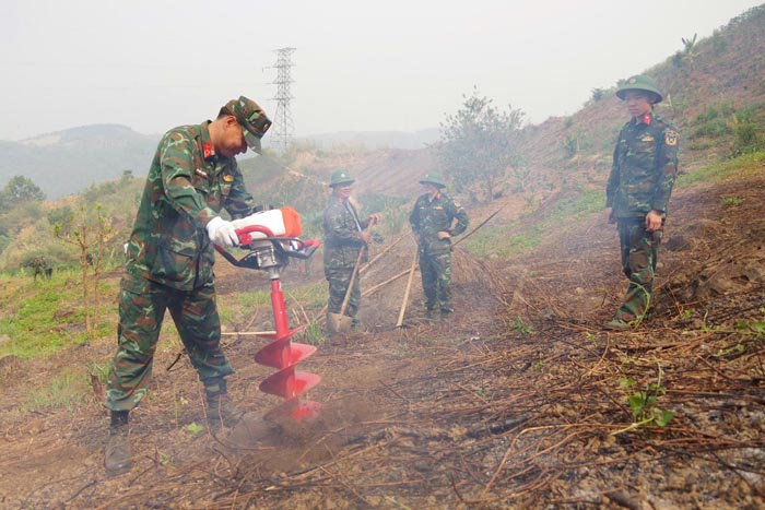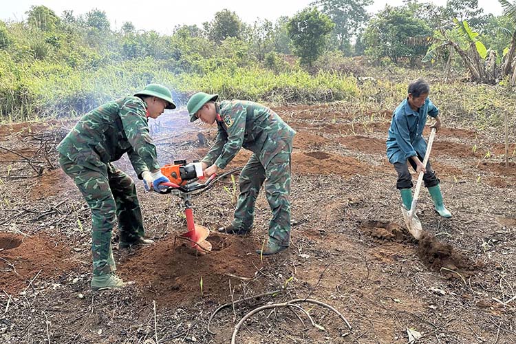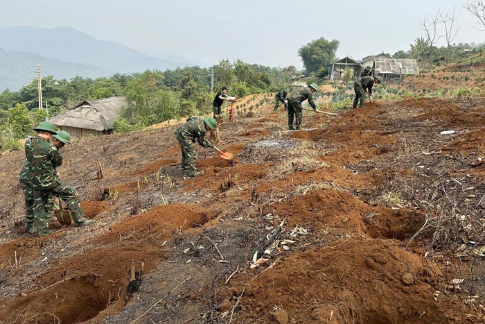 On the morning of April 9, in Hua Nam and Pa Lieng villages (Muong Ang commune), 100 officers and soldiers of Regiment 82, Division 355 (Military Region 2) and 10 soldiers of the Regional Defense Command 4, Muong Ang made efforts to overcome terrain and weather, completing the excavation of 29,600 pits, equivalent to 6.4 ha.