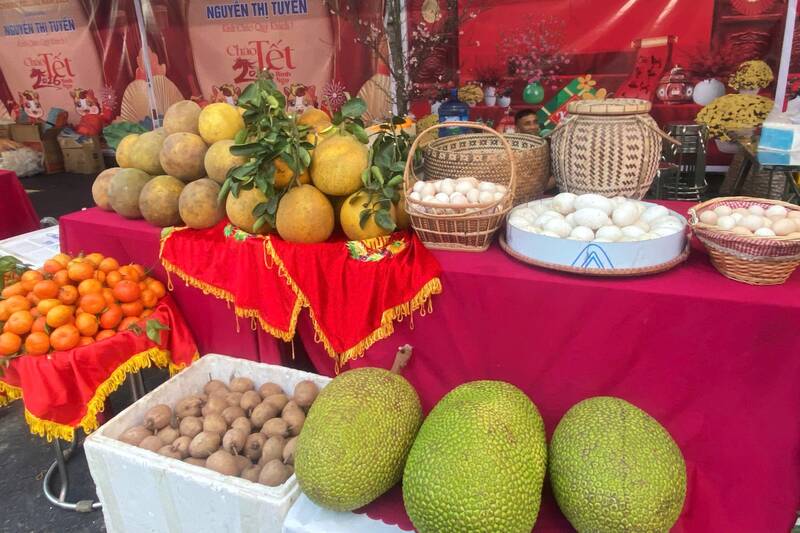 The fair has 22 booths of cooperatives and production households. Hundreds of typical products are introduced such as honey, longan, coconut jam, smoked buffalo meat, dried bamboo shoots...