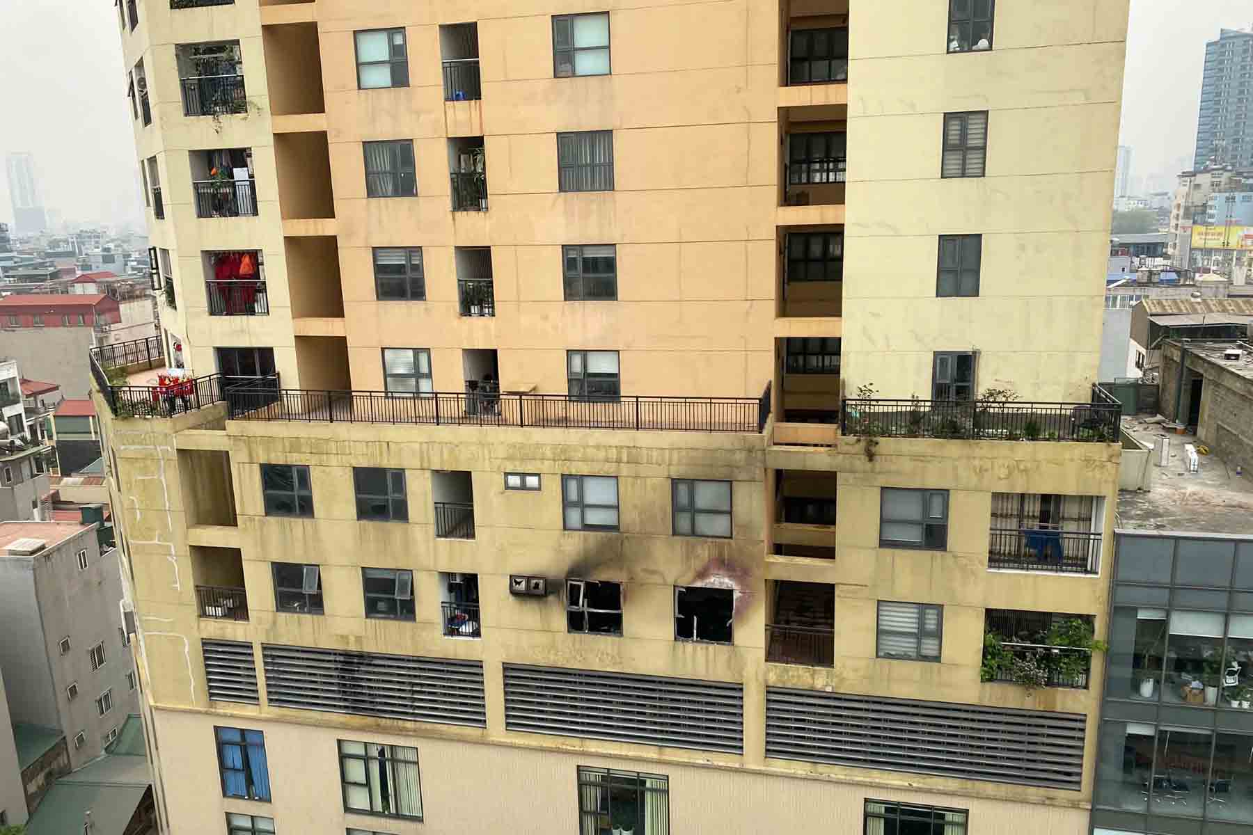 Smoke and fire engulfed the apartment. The heat of the fire broke the apartment windows. Many people living in the apartment quickly moved down to the lobby to ensure safety" - Ms. Linh said.