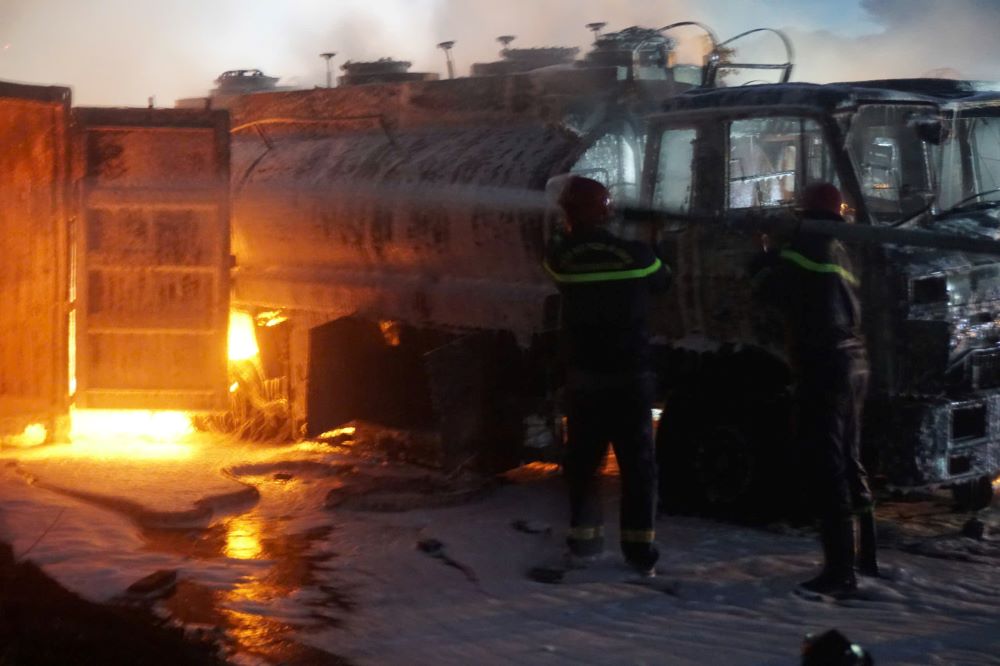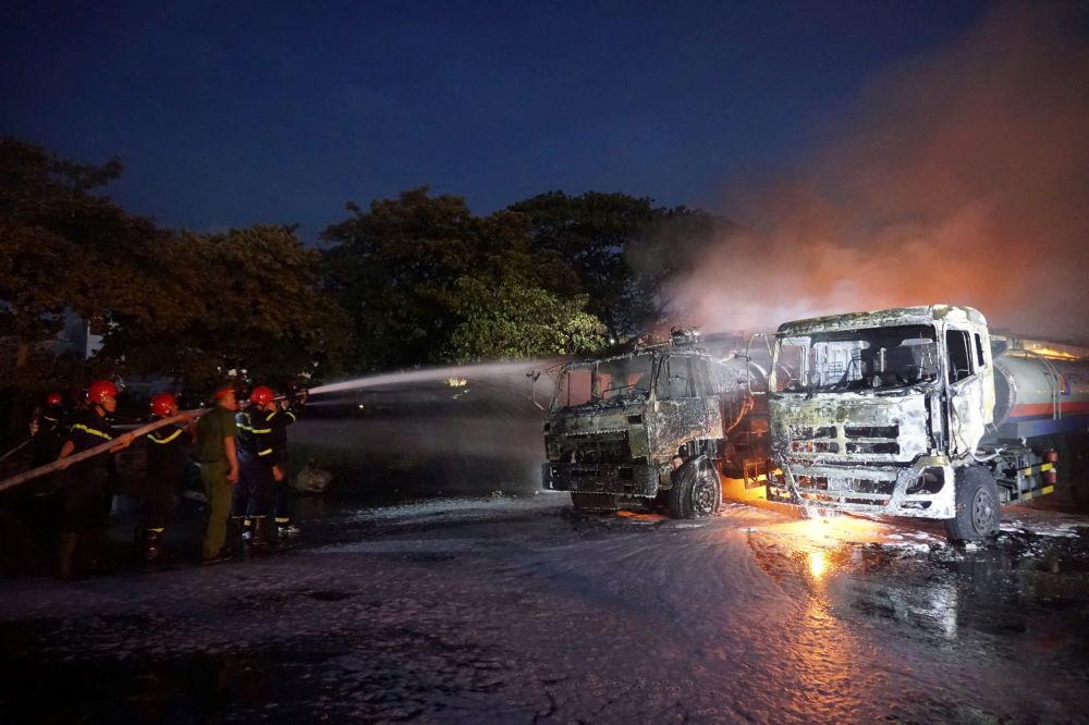 Immediately after receiving the news, the Fire Prevention and Rescue Police of Da Nang City Police quickly arrived at the scene to deploy fire fighting work. Initial records show that the fire engulfed 2 gasoline tankers and a container containing oil depots, with smoke rising as high as suspicion.