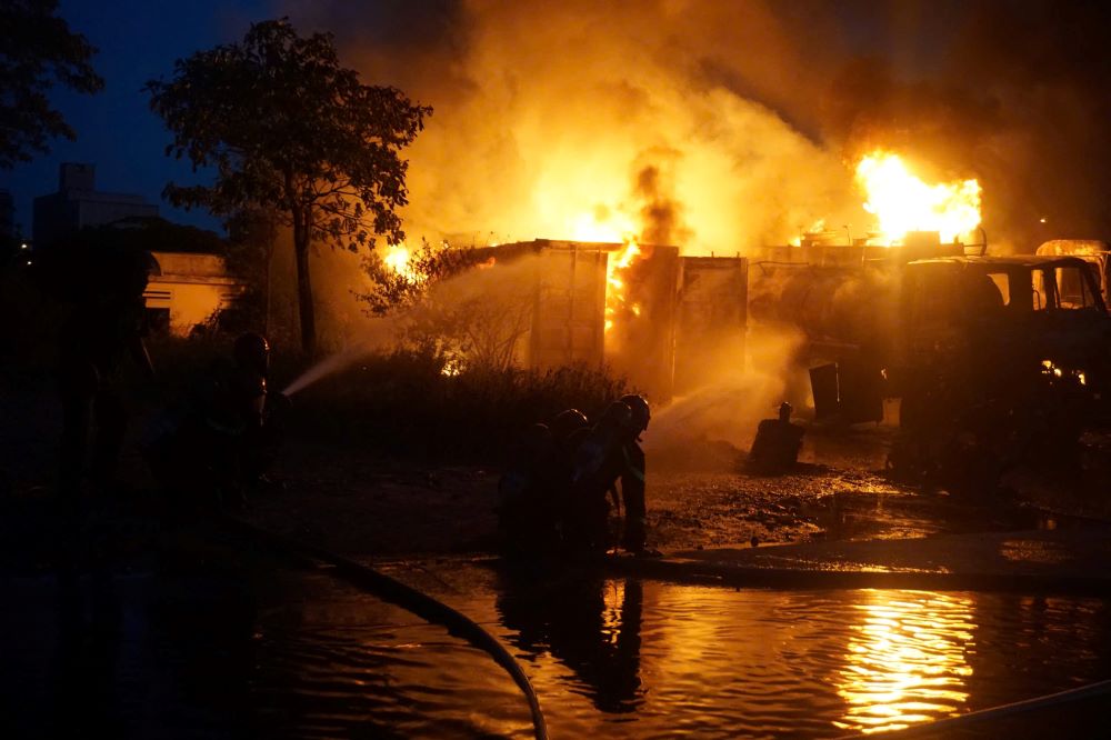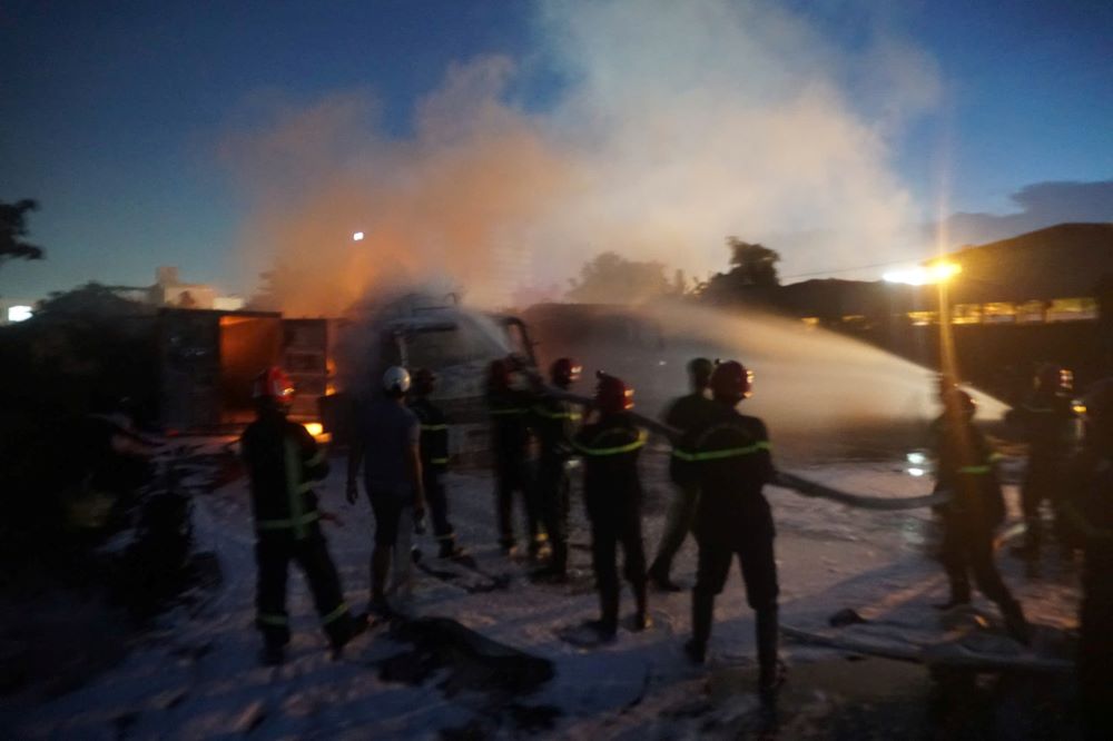 At about 5:40 p.m. on October 11, a major fire broke out at the parking lot behind Petrolimex Petroleum store No. 9, on Le Van Hien Street, Ngu Hanh Son Ward, Da Nang City.