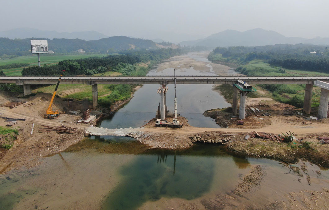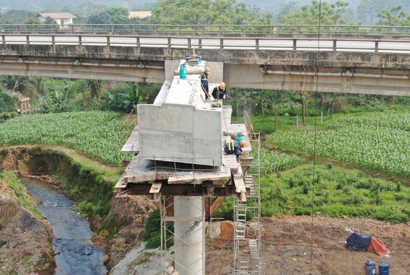 Along with Ngoi Buc bridge, Ngoi Thia bridge (Km145+434) with a length of more than 307m is also being accelerated in construction. Currently, the contractor is arranging human resources to work continuously in 3 shifts to soon complete the bridge piers before the rainy and flood season.