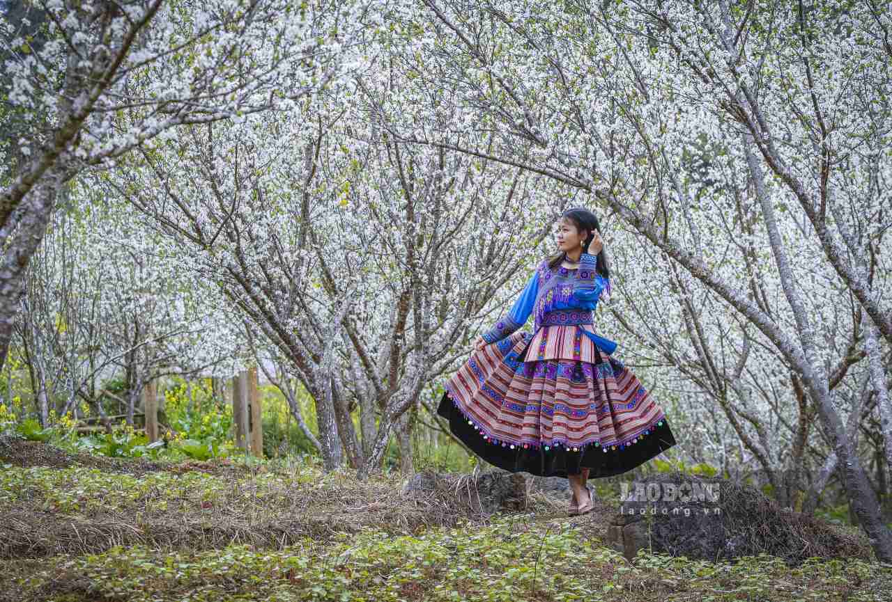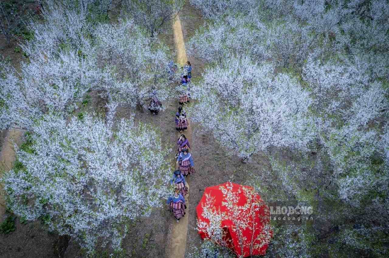Not only scenery, the Bac Ha plum blossom season is also the season of festivals imbued with cultural colors. In the space of white sky and flowers, the image of H'Mong girls in brilliant traditional costumes stands out like spring flowers.