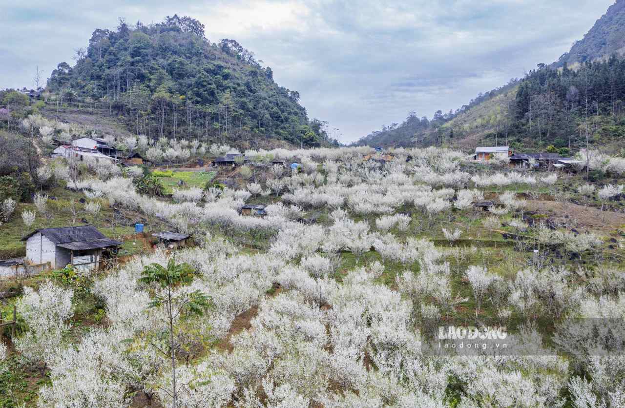 Plum blossoms in this area include two types of Tam Hoa plums blooming in January and Ta Van plums blooming right on Tet, creating a characteristic "white plateau" season.