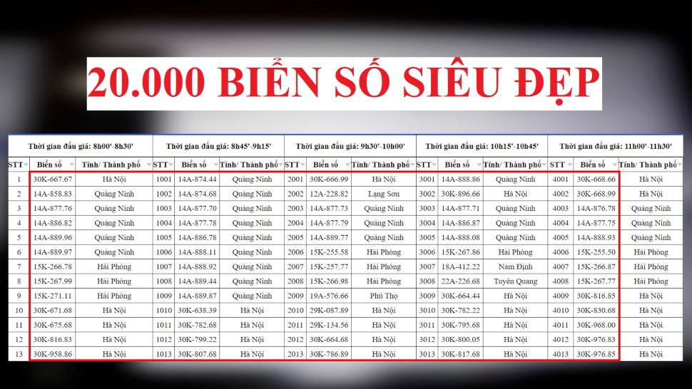 Theo quy chế, giá khởi điểm của một biển số là 40 triệu đồng, mỗi bước giá là 5 triệu đồng. Người tham gia đấu giá cần đặt trước 40 triệu đồng cho mỗi biển số muốn tham gia và 100.000 đồng phí hồ sơ.
