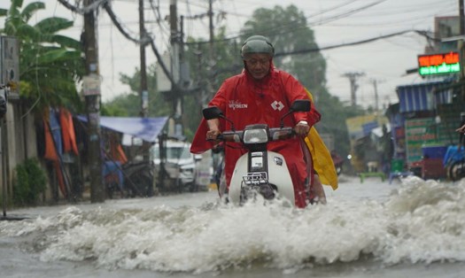 In particular, at D5 road (intersection with Xo Viet Nghe Tinh and Nguyen Gia Tri streets, Binh Thanh district), the deep flooding lasted nearly 500m. The water was up to more than half of the wheel, making it difficult for vehicles to move.