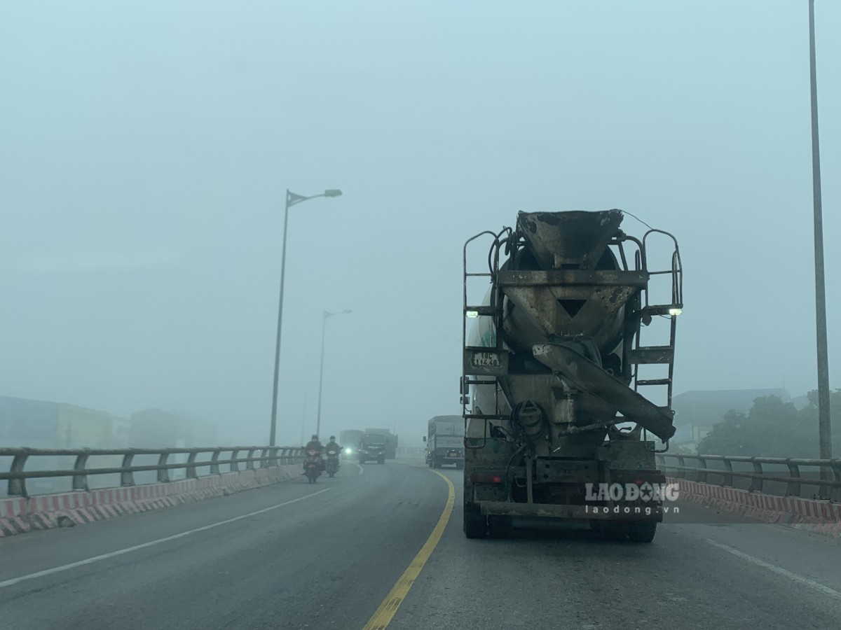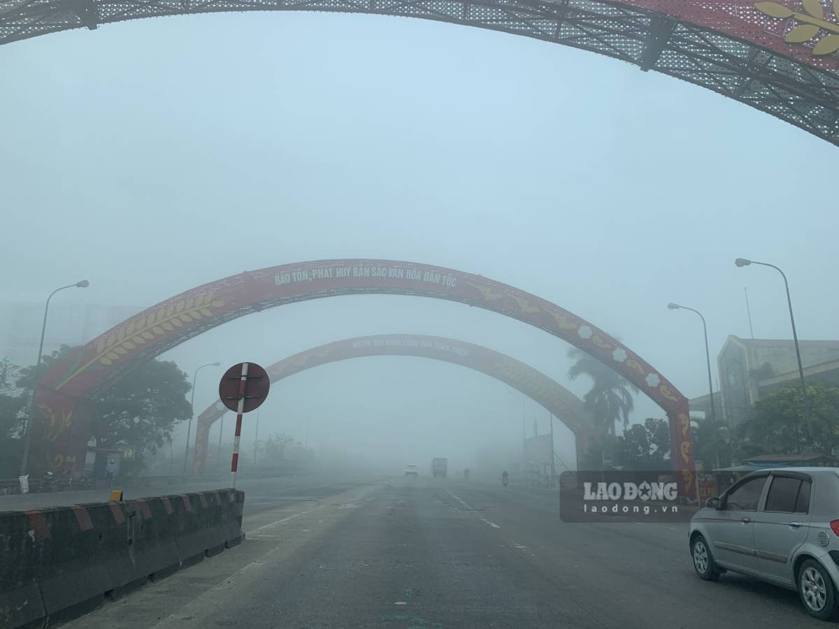 Recorded by Lao Dong Newspaper reporters at about 7:30 am on January 13, in the areas of Than Khe, Tien Hung, Van Xuan, Hong Minh communes... (Hung Yen province) and Nam Dinh, Thien Truong, Vi Khe wards, Co Le commune... (Ninh Binh province), thick fog appeared. On many roads, fog covered, limiting visibility.