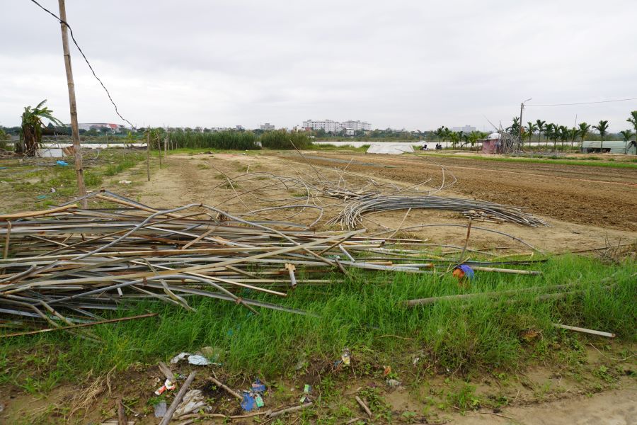 In early December, it was noted that in La Huong vegetable garden (Da Nang city), after 2 major floods, the once lush green fields now revealed thick layers of mud, fallen trees, and many areas were lost.