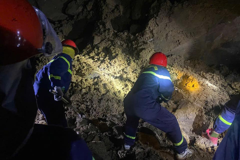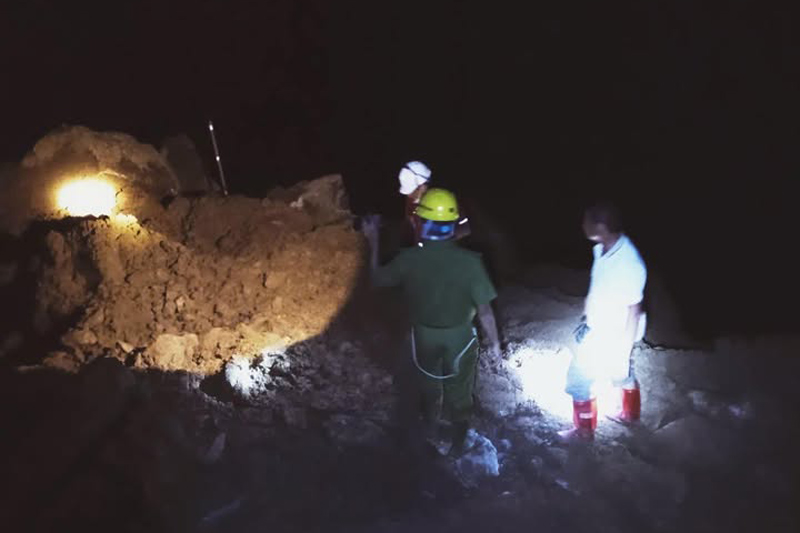 Currently, after many hours of effort, the units have cleared the rocks and soil and brought the two bodies, Hoang Van Dinh and Hoang Duc Giang, out. Rescue work is still being carried out to search for the remaining person, Mr. Tam added.