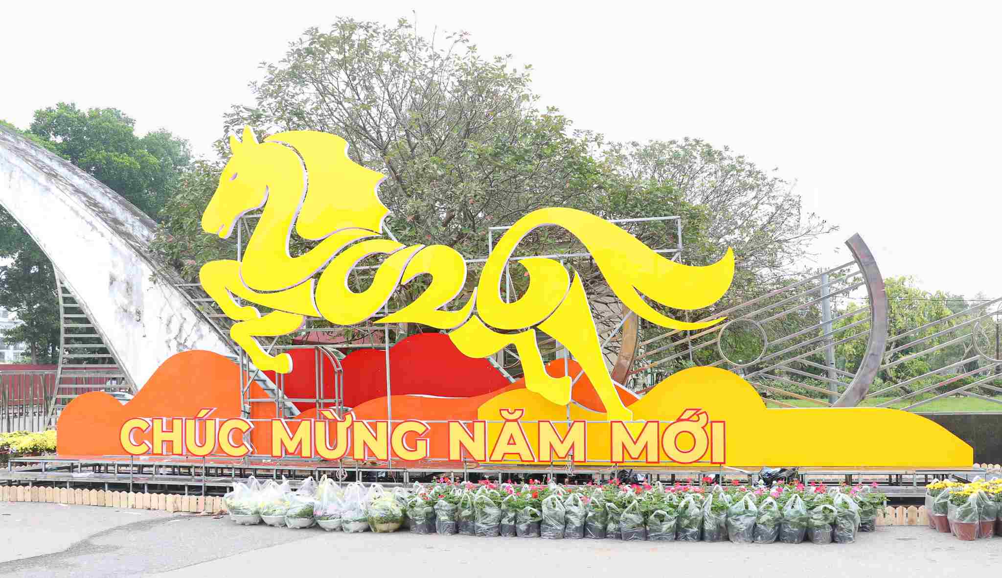 The center of the route are large-scale miniatures such as "Prosperity Ferris wheel", "God tree gathering fortune and luck", "Pacificant animal of the Year of the Horse" created in a lively 3D shape, carrying messages about aspirations for development, luck and prosperity in the new year.