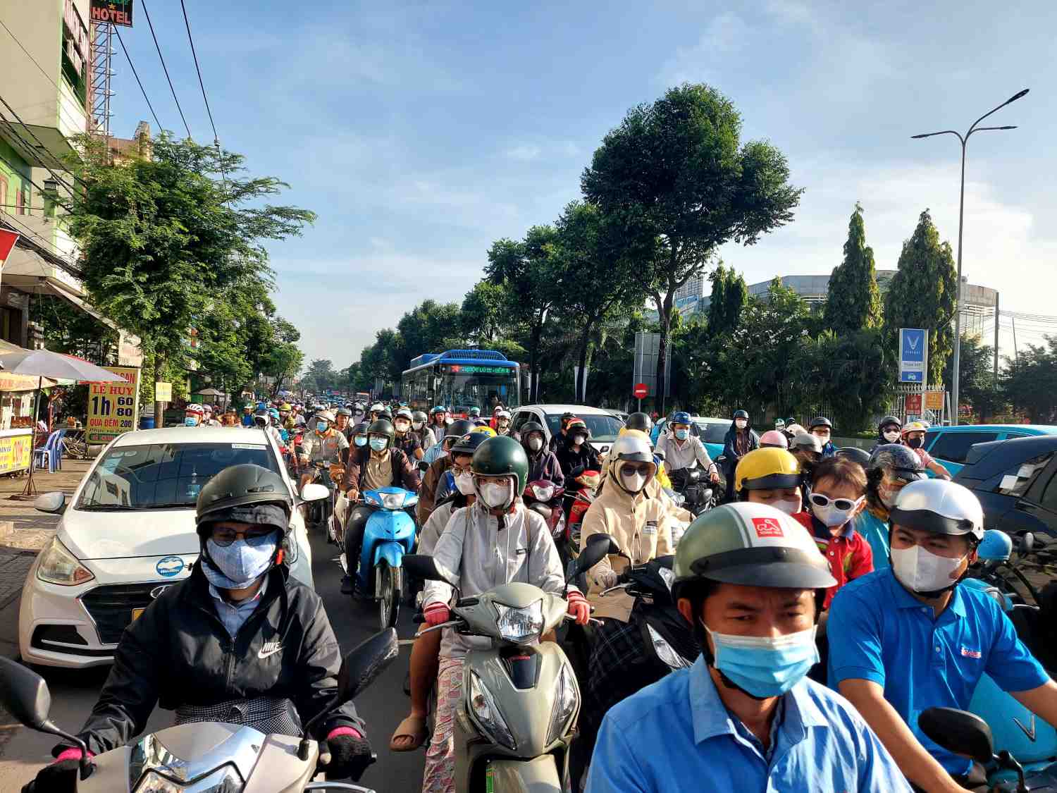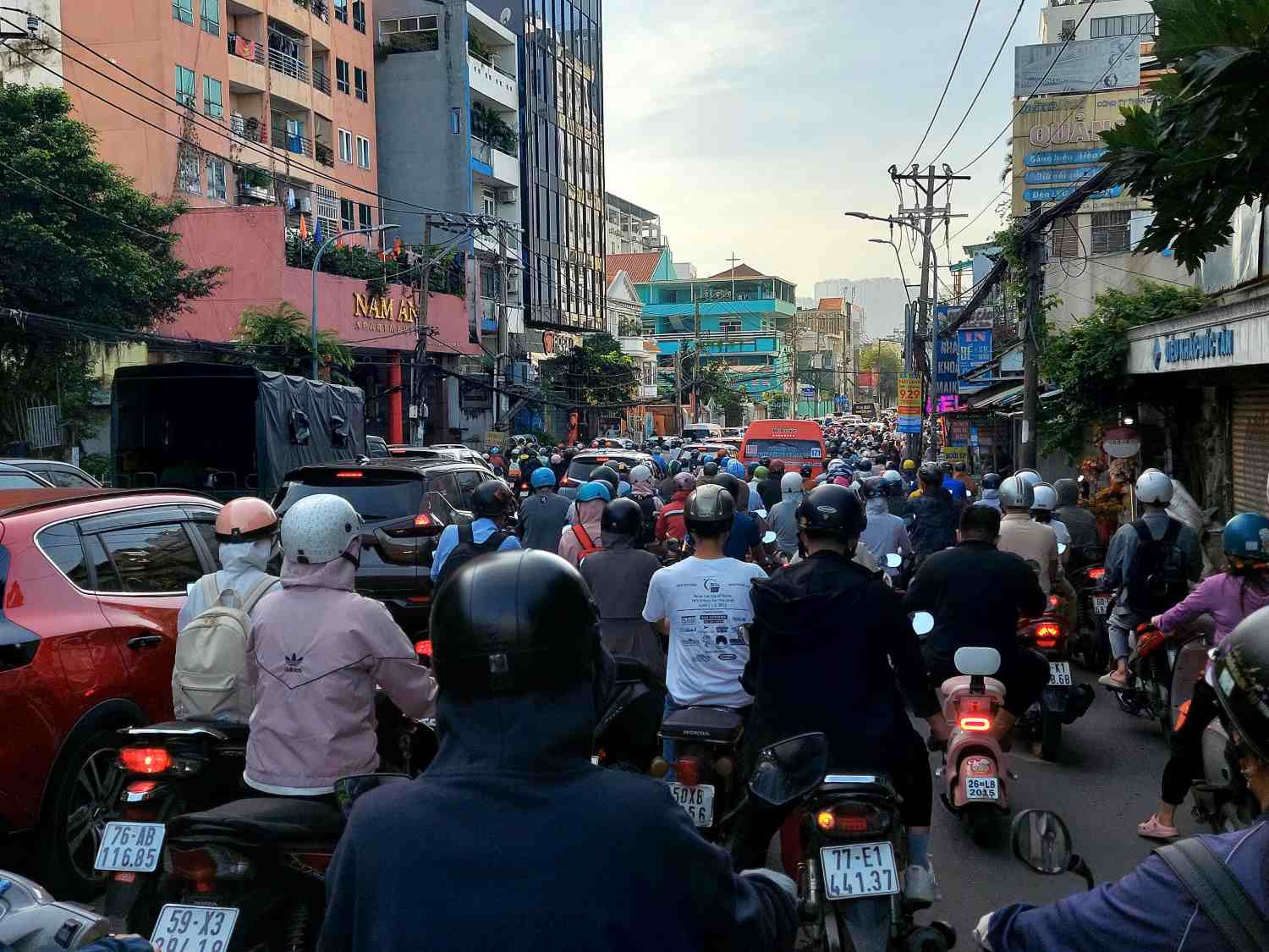 The section from Nguyen Xi Street to Bach Dang Street is often congested, thousands of people are stuck on the road to work and school. The distance is more than 1 km but it takes people nearly 30 minutes to move, motorbikes and cars jostle at the intersection with Bach Dang Street.