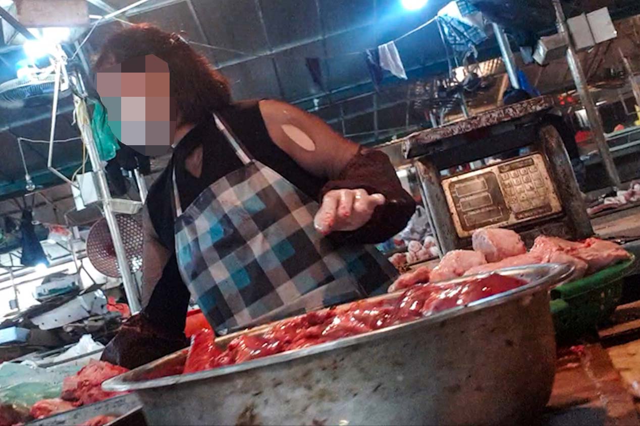 Not far from this stall, another small trader is quickly cutting down frozen pork right on the dirty table. This person said that he also accepts wholesale of frozen buffalo and cow meat for restaurants and eateries if needed.