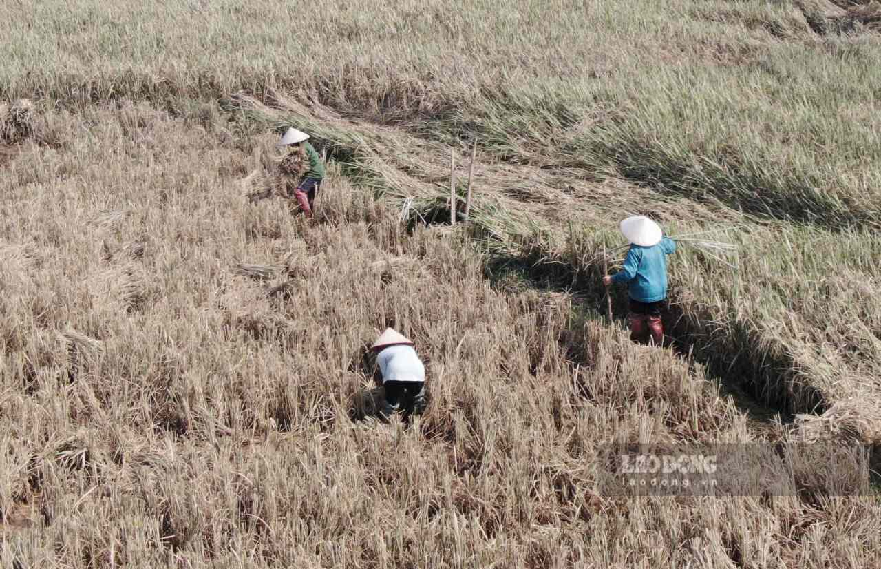 "The rice has been soaked in floodwater for many days, people cannot eat it. Just pick them up and beat them to the chickens. I don't know what people will get from now until Tet to live on," Mr. Nhan said sadly.