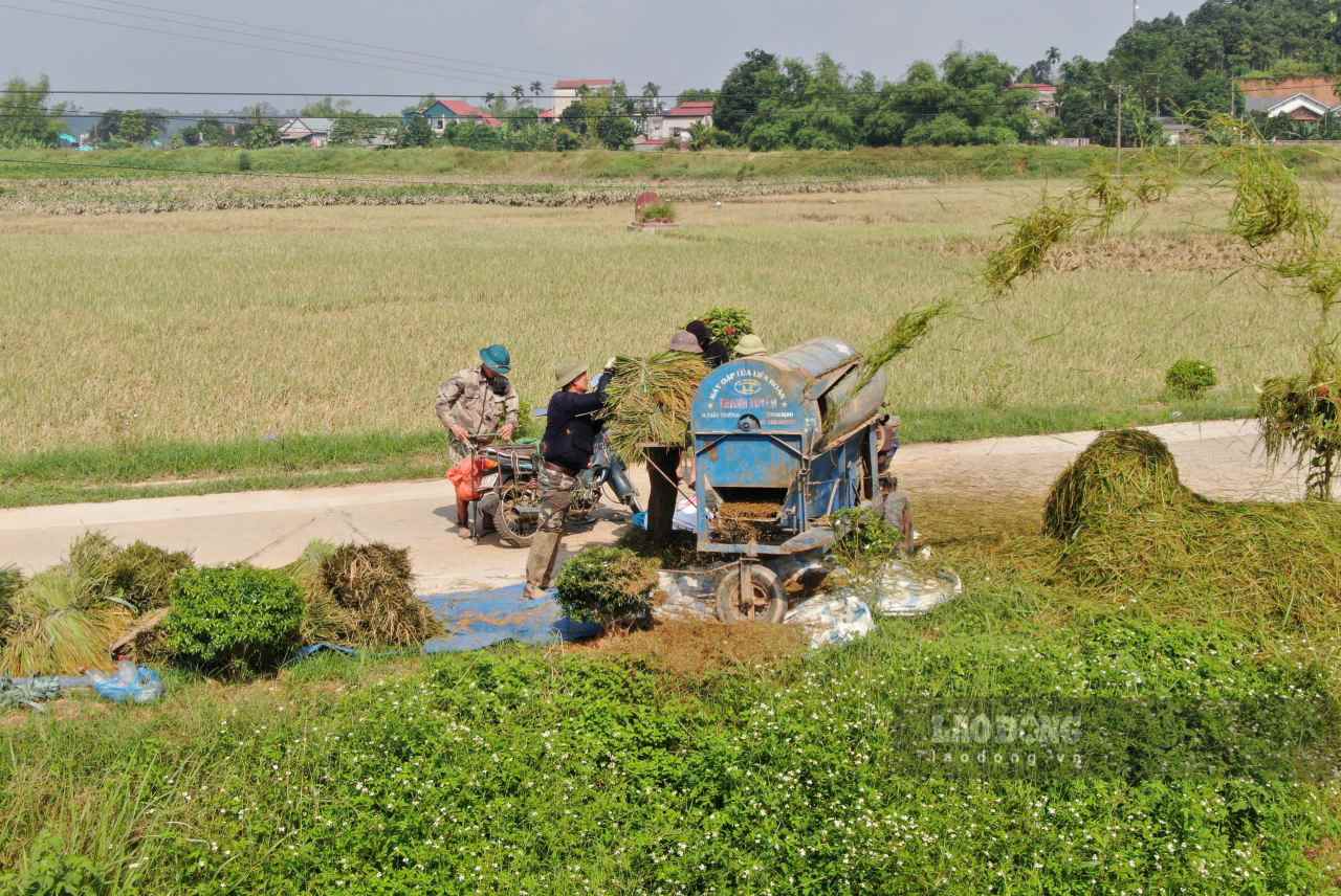 Mr. Nguyen Van Nhan (residing in Phu Lan village, Tran Yen commune) said that more than 4 sao of his family's fields were deeply submerged in water. Although the rice does not ripen for another 10 days, we have to take advantage of the sunny weather to go to the fields to harvest.