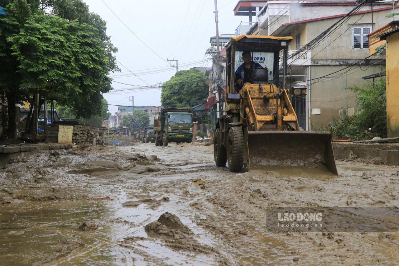 Mr. Nguyen Tien Si, Deputy Director of Tien Dat Construction and Trading Joint Stock Company, said that after the water receded, the company mobilized 12 cars and excavators and human resources to clear the mud, ensuring traffic and daily life for the people.