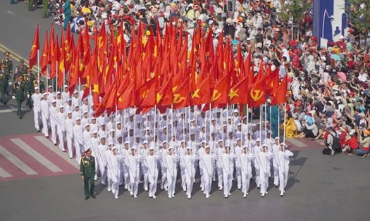 - 19:00-19:30: Hiep si parade on Nguyen Hue Street. 3D Mapping program from the French art troupe with the work "Vietnam - France: A perspective" at the Headquarters of the People's Council - People's Committee of Ho Chi Minh City. The military band and the flute team performed at the Ho Chi Minh City People's Committee.