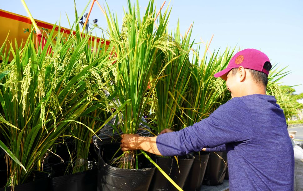 Currently, the rice is in the ripening stage. Thanks to the supplementation of soil and water, the rice still grows normally as when planted in the field, ensuring display time throughout the Tet peak season.