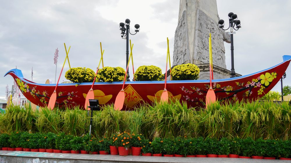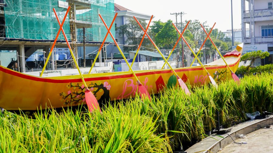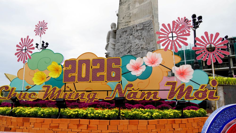 According to Soc Trang Ward People's Committee (Can Tho City), the 3 Girls' Monument roundabout area is arranged with 6 decorative clusters, including 1 main gate, 2 auxiliary clusters and 3 flower boat clusters. This is a familiar highlight every Tet holiday, attracting people and tourists to visit and take photos, contributing to creating spring travel space and improving community spiritual life.