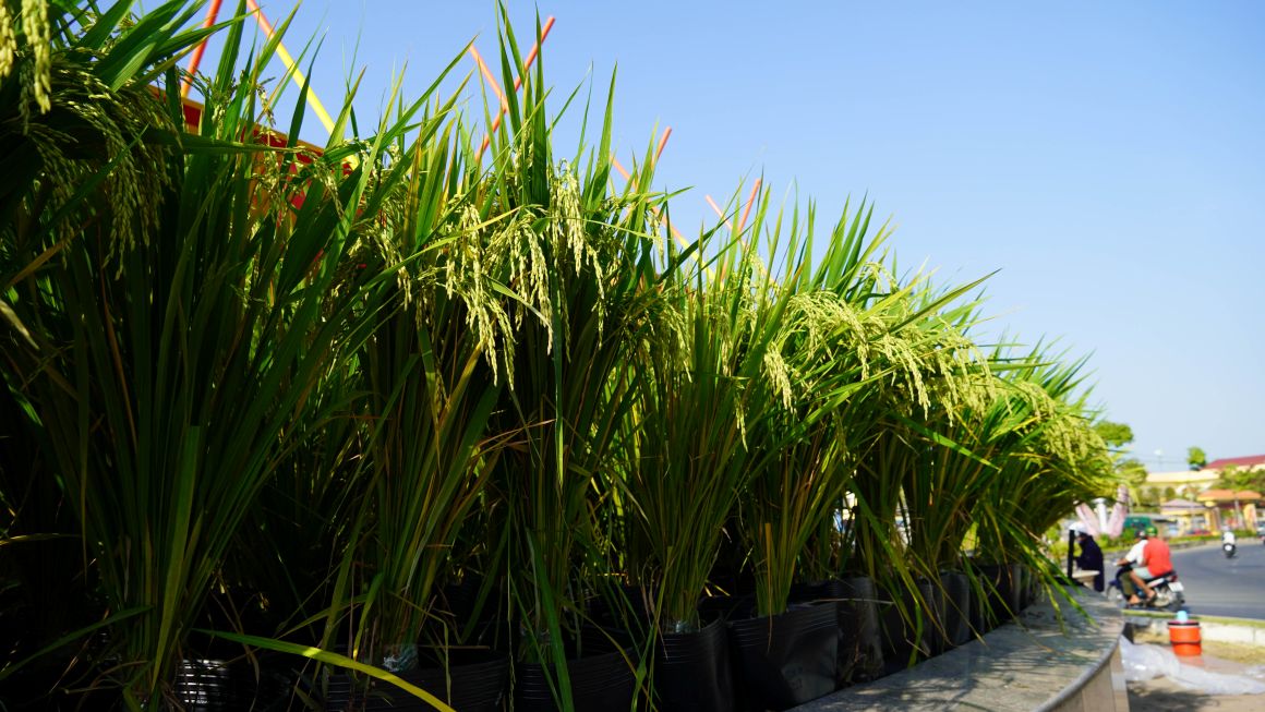 Representatives of the construction unit said that this year the roundabout area was renewed by displaying rice interspersed with flowers. About 1,600 rice pots were mobilized to serve decoration. From the 20th day of the lunar month, rice began to be transported to the roundabout to complete decoration.
