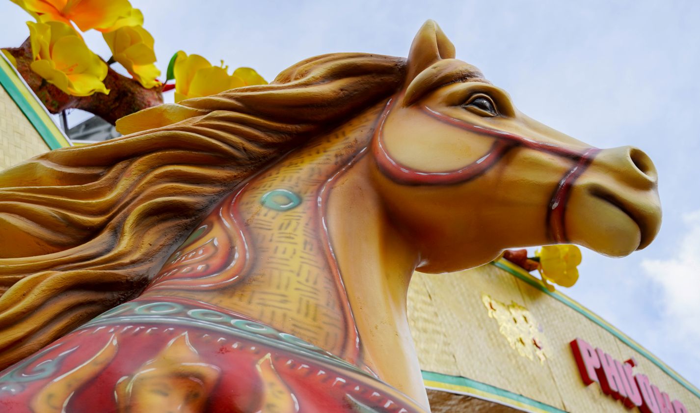 Mr. Trung Thanh - representative of the design unit - said that the idea was developed based on the harmony of the three cultures of Kinh - Khmer - Hoa, expressed through the system of patterns on the horse's body and surrounding miniature landscapes. The entire construction process was carried out in about 2 weeks to keep up with the progress to serve people celebrating spring.