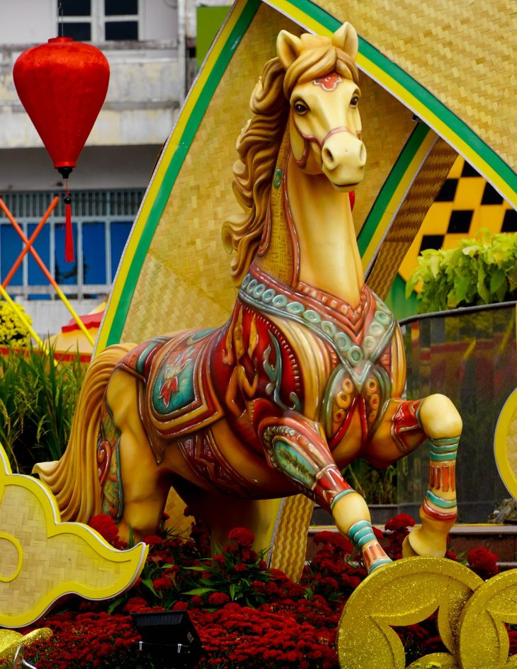 Prominent at the roundabout is also a cluster of miniatures of horse family on Tet. Soft shaping, gentle eyes and delicate floral details help the mascot cluster exude a familiar look. Not only symbolizing proliferation and development, the image of the horse family also sends a message about family affection, cohesion and complete happiness.