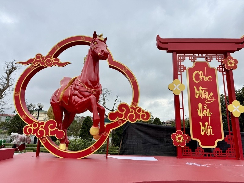 Talking to PV, Mr. Tran Chung Chien - representative of Hoang Gia Media Entertainment Service Trading Co., Ltd., the unit directly constructing - said that the red horse mascot is made from composite material (synthetic resin), ensuring durability, shaping ability and color when displayed outdoors.