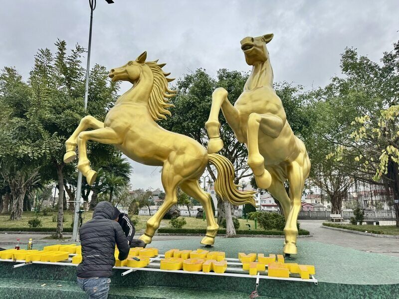 According to Mr. Vo Van Quoc, a worker directly involved in the construction of the pair of golden horses, the workforce has been installing this item for about a week now.