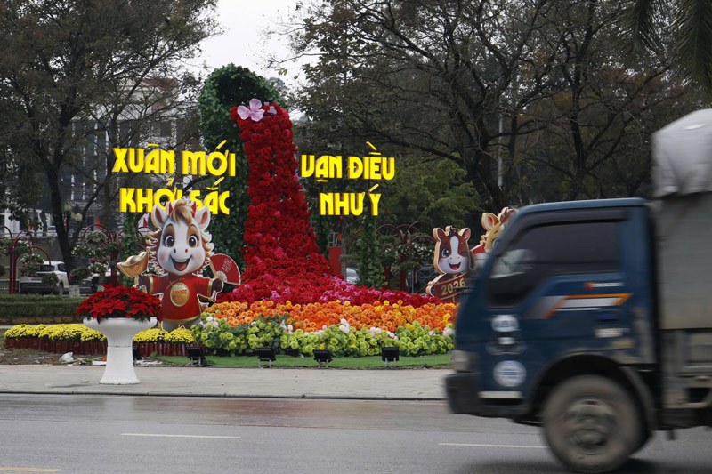In the days leading up to Tet, the construction and decoration atmosphere in many localities in Lao Cai became urgent in order to complete the items to serve the new year in time.