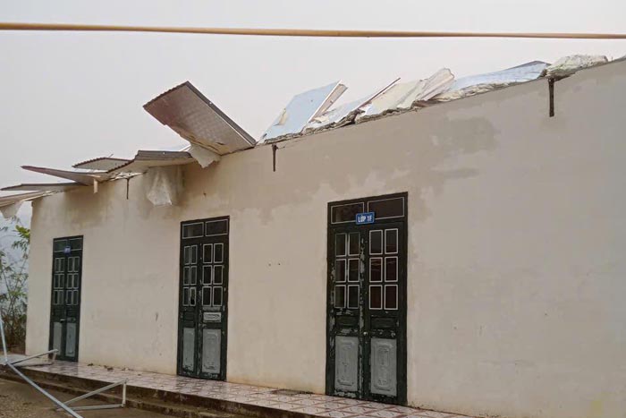 Specifically, 1 elementary school branch had its roof blown off, 9 households were affected, there were no casualties but many properties, houses of people and educational institutions were damaged by tornadoes.