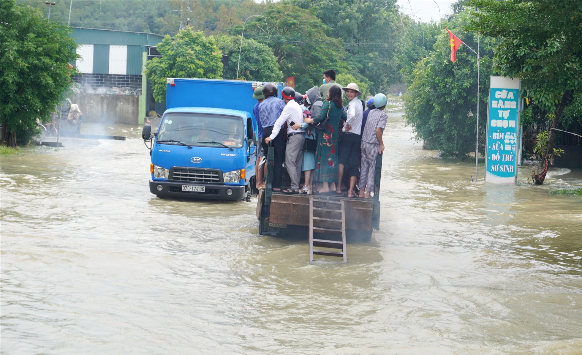 “Mưa lớn, nước dân cao, nhiều hộ đang bị ngập sâu, hiện chưa thống kê được con số cụ thể” - ông Lương Văn Biên nói và cho biết thêm nhiều đoạn đường tại đây cũng bị ngập sâu.