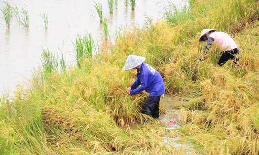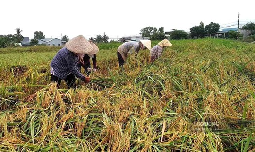 In Tien Giang province, the impact of prolonged heavy rains has caused many rice fields of farmers to collapse. Faced with these disadvantages, farmers are actively taking advantage of the situation to bundle up rice.