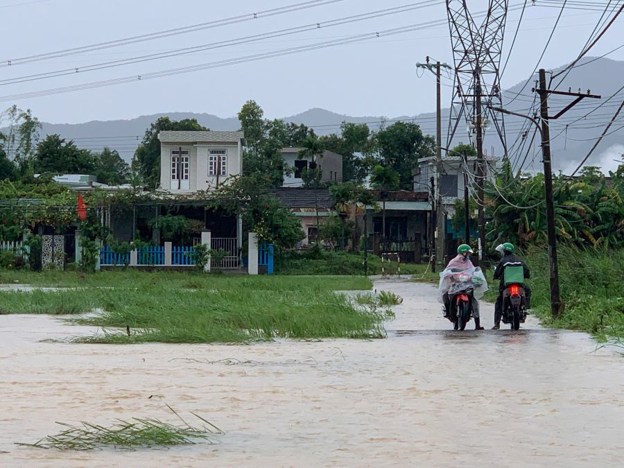 In Nam Yen village (Hai Van ward), heavy rain caused many areas to be deeply flooded, some roads were cut off, making it difficult for people to travel.