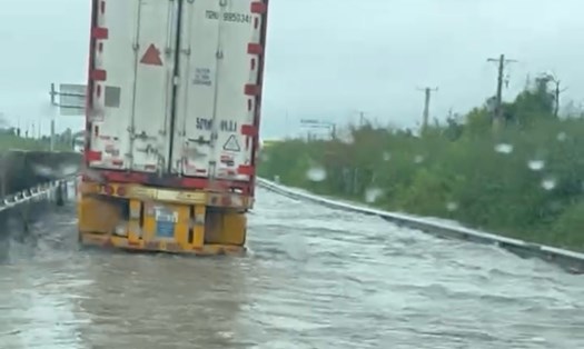 National Highway 1 through Vung Ang Ward, section Km565+900, was flooded nearly 50cm, causing difficulties for vehicles to travel.
