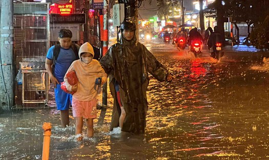 On the morning of October 21, according to Lao Dong Newspaper reporters, in Dong Hoi City (Quang Binh Province), there was heavy rain and many roads were deeply flooded.