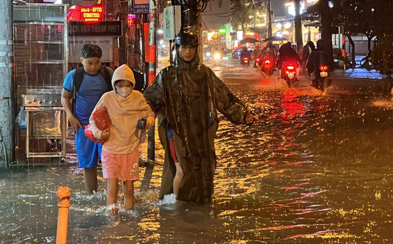 On Duong Van An, Hai Ba Trung and Tran Quang Khai streets, the water level is 20-30cm deep.
