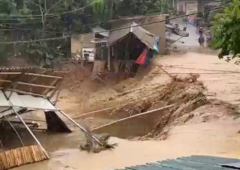 Accordingly, in On village, Phu Son commune, there was a landslide, with about 500m3 of soil and rock completely collapsing the kitchen area and drifting into Mr. Ha Van Trien's house; In Vui village, Phu Xuan commune, there was a landslide, about 200m3 of soil and rock completely buried the kitchen, cracking the wall of Mr. Ha Van Phia's household.