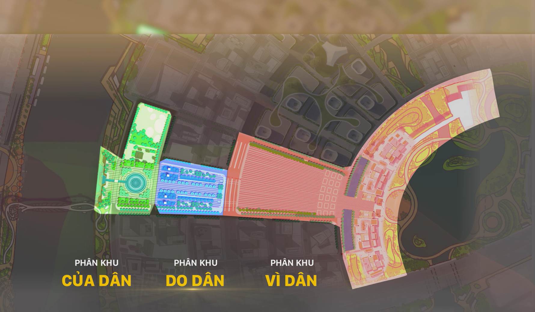 The "For the People" sub-area is the focal area, about 350 m long, 245 m wide, with a square area of about 6.6 ha, along with the Administrative Center, theater and conference - performance center. This space is qualified to organize major national-level events such as military parades and parades.