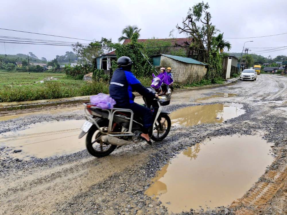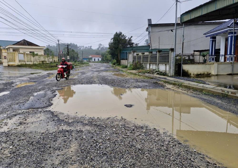 According to Ms. Thuy, the entire road is degraded, but the area in front of her house is the heaviest, with mud tens of cm thick, making it extremely difficult for people and vehicles to travel, even frequent falls.