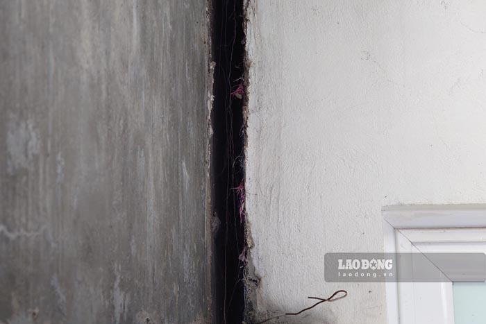Due to the construction process but no safety plan, the foundation of the area has seriously sunk. As a result, Mr. Duong's house was tilted, the walls were separated from the original structure with an aperture of 7-10cm, the floor had cracks and tiles that were stretched and broken.