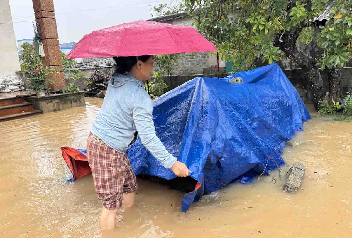 "Water has flooded into the yard. The whole family had to put up furniture and make beds. Duck chickens must also be put on tables and shelves to avoid flooding," said Ms. Hoa.