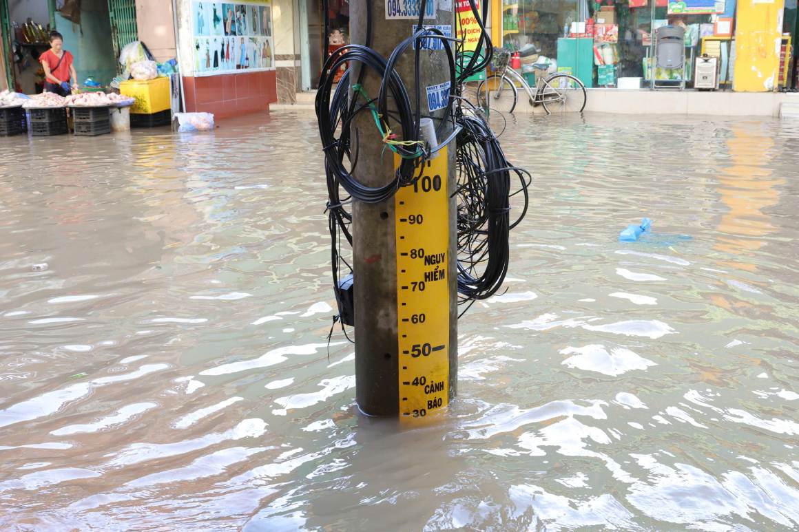 Running a grocery store next to Bui Huu Nghia Street, Ms. Nguyen Thi Kieu Oanh said that the flooding in recent years and the peak of the 15th day of the 9th lunar month have completely disrupted her family's daily life. During high tides, she had to temporarily stop trading and spend a lot of time pumping water out.