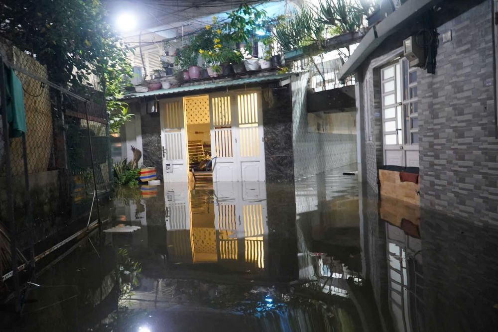 "For the past two days, my house has been submerged in water, all my belongings are wet, and I have stayed up all night to get a bucket of water. Today's offering is even higher than yesterday," said Mr. Hoang Van Khoa (Binh Quoi ward), his voice was tired.