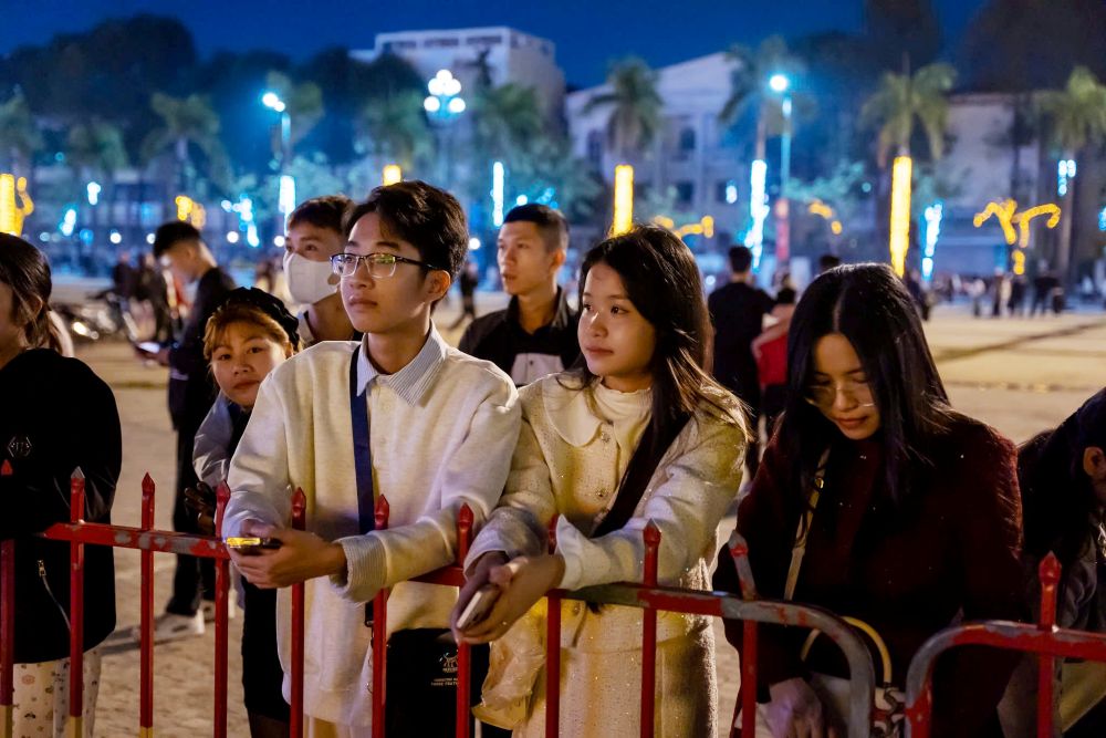 Many villages in Thanh Hoa are decorated with brilliant decorative lighting systems on the roads. Photo: Quach DuYoung people waiting to watch fireworks at Lam Son square (Hac Thanh ward, Thanh Hoa province). Photo: Quach DuAt 11:30 pm on New Year's Eve, people in Cong Chinh commune, Thanh Hoa province have completed their work, ready for the moment to welcome the new year. Photo: Quach Du