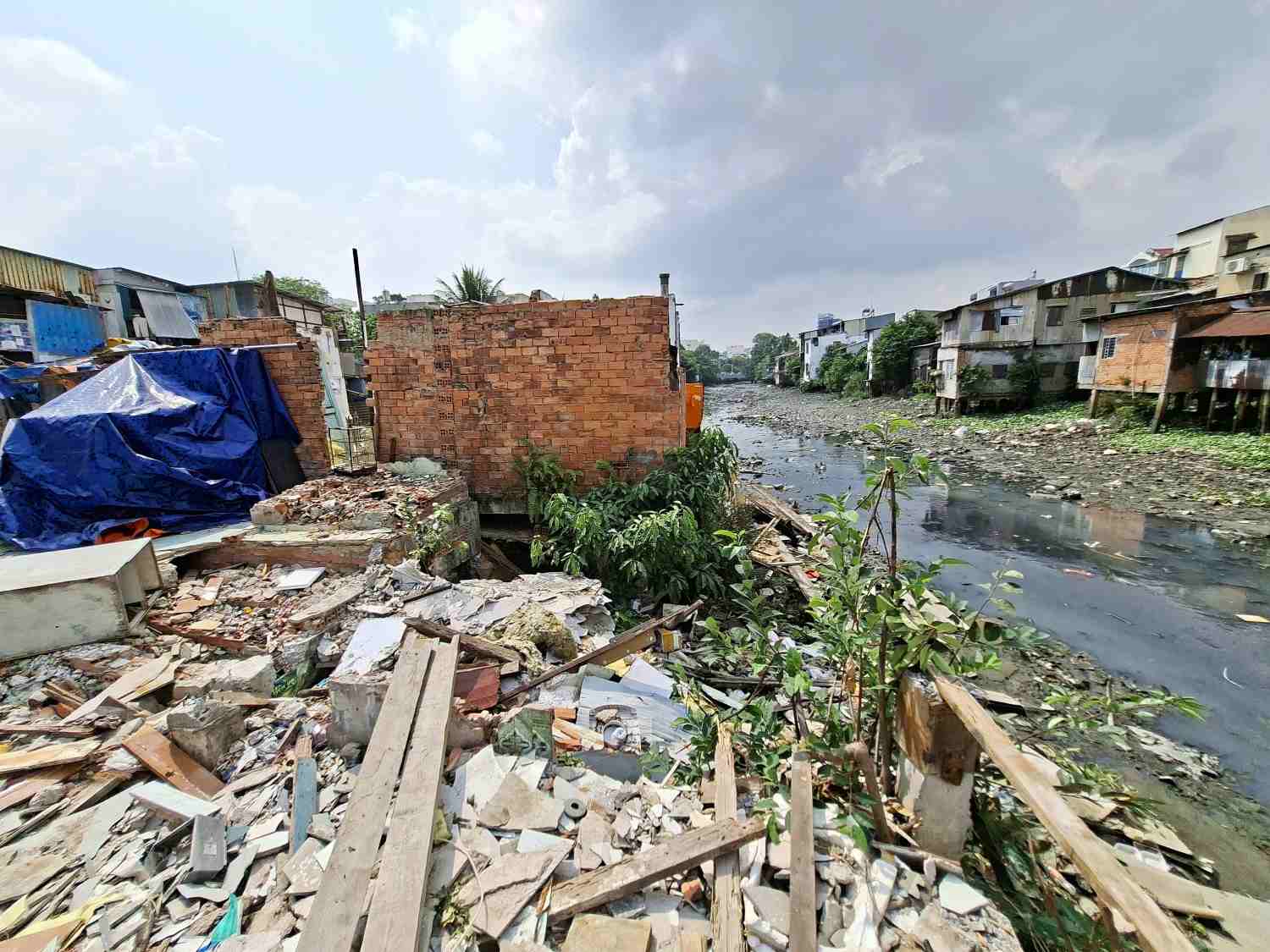 On January 19, records in the Xuyen Tam canal area, near the inter-ward bridge (Gia Dinh ward), a series of houses have been partially or completely dismantled.