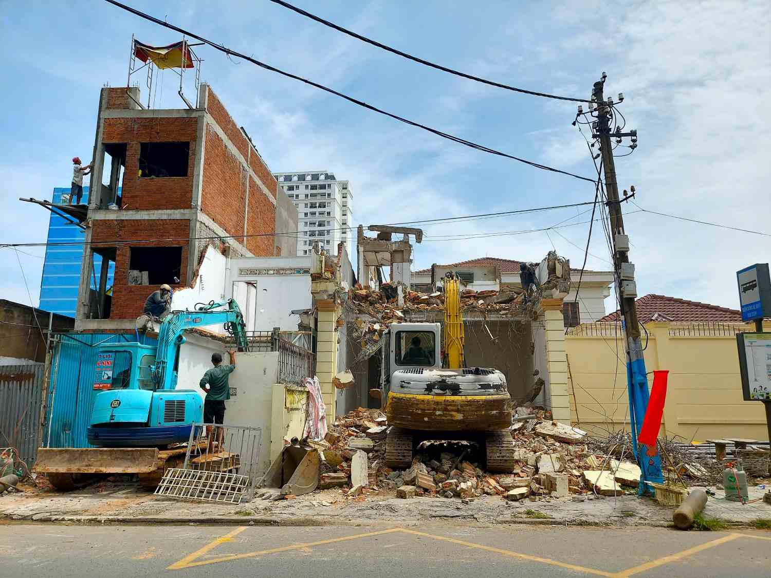 In recent days, along the Nguyen Khoi route, many households have hired workers and machinery to demolish the houses in front, moving an average of 5-7 m deep to hand over the land.