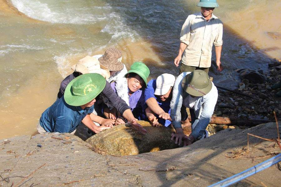 Currently, the rice is ripe, the demand for travel is increasing, so Luu 2 village has mobilized more than 30 people to join hands to repair the bridge.
