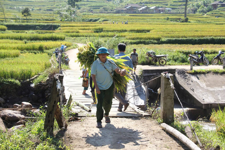 Mr. Lo Van Noi (in Luu 2 village) also shared that his family has 2 sao of rice on the other side of the bridge to start harvesting. When the bridge was broken and making travel difficult, he was very worried, but after a day, thanks to the cooperation and cooperation of the people, the bridge was repaired in time.